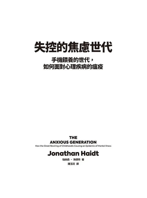 失控的焦慮世代:手機餵養的世代,如何面對心理疾病的瘟疫