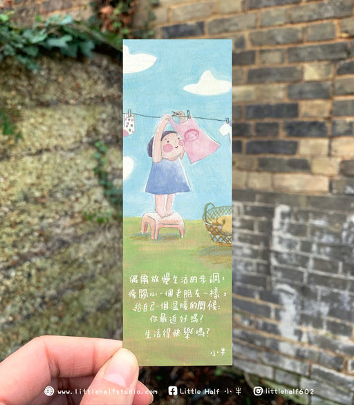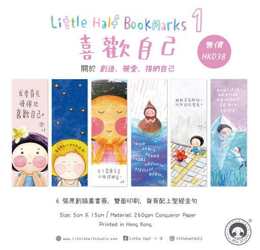 小半 Little HalfIn stock6 張原創插畫書簽 關於自我關懷、善待自己、良善 雙面印刷,背頁配上聖經金句 Size: 5cm X 15cm Material: 260gsm Conqueror Paper Printed in Hong Kong
