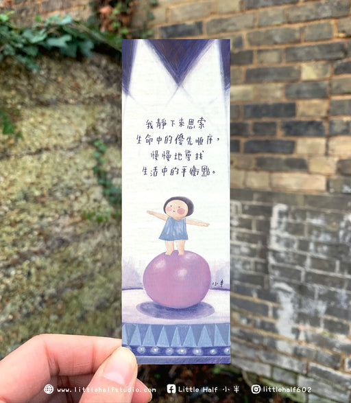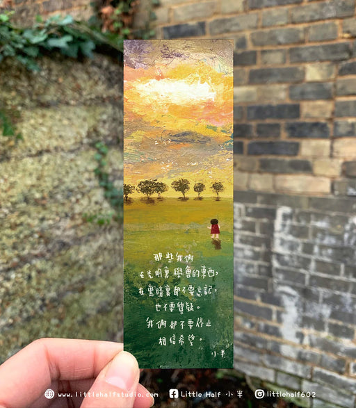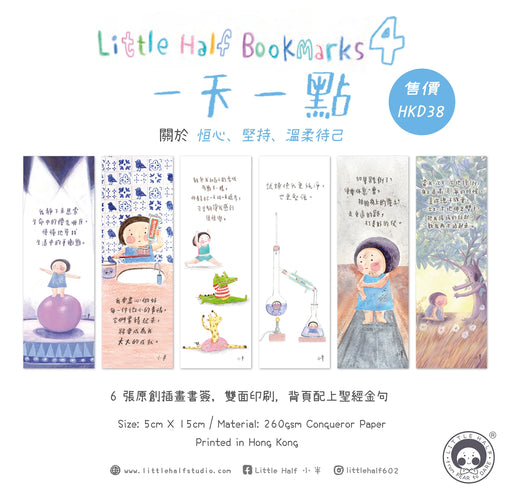 小半 Little HalfIn stock6 張原創插畫書簽 關於恒心、堅持、溫柔待己 雙面印刷,背頁配上聖經金句 Size: 5cm X 15cm Material: 260gsm Conqueror Paper Printed in Hong Kong