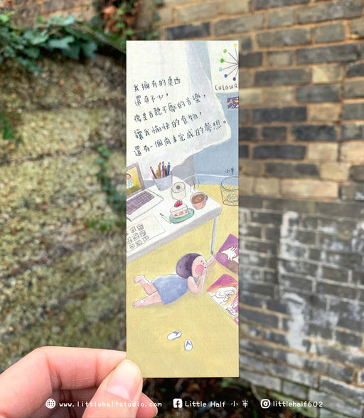 小半 Little HalfIn stock6 張原創插畫書簽 關於創造、被愛、接納自己 雙面印刷,背頁配上聖經金句 Size: 5cm X 15cm Material: 260gsm Conqueror Paper Printed in Hong Kong
