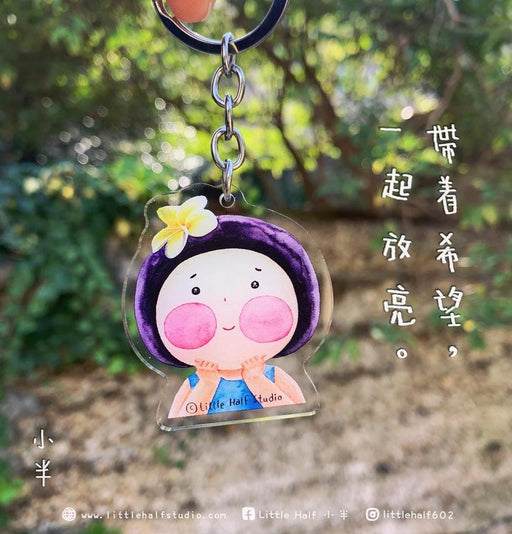 小半 Little HalfIn stock「我們一起經過。」插圖取自2019年繪畫的圖:「只要我們仍然活着,即使在最壞的時代,也能夠感受到最好的東西。」尺寸:48mm(W) x 50mm (H)連金屬環和鏈長度:10.6cm材質:亞加力膠 + 金屬扣 P.S. 買完記得撕咗兩面的透明保護膜啊,會靚好多清好多:)