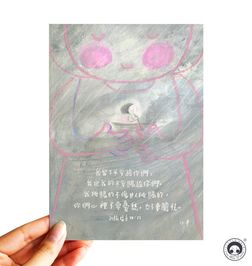 小半 Little HalfIn stock我留下平安給你們,我把我的平安賜給你們。我所賜的不像世人所賜的,你們心裏不要憂愁, 也不要膽怯。 - 約翰福音14:27 特色: 畫作爲複印本。 畫作以白色硬咭紙托底,再以獨立透明膠袋包裝,背後有小半燙金LOGO貼紙。 可自由以喜愛的畫框裱起,為空間增添美感和正能量! 送禮自用皆宜。 材質...