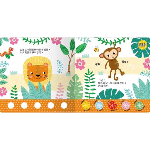 Nick AcklandIn stock♫英國iamabookworm出版社獨家授權繁體中文版♫ ♫5種動物的聲音,共同上演精采的奇妙故事♫ 跟著獅子爸爸探索大大的叢林, 並說服一路上遇到的動物小聲一點, 按下書中的按鍵,參與冒險路上的點點滴滴, 並且觸摸按壓發聲按鍵,促進五感發展。 快來與獅子爸爸一起在叢林去遇見各種...