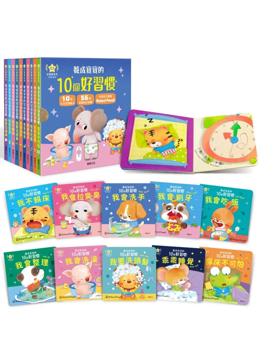 華碩文化In stock養成寶寶的10個好習慣包含:不賴床、自己上廁所、洗手、刷牙、吃飯、整理收拾、洗澡、洗頭髮、睡覺、尿床,這些主題與孩子的日常生活息息相關,書中的每一頁都有操作機關,增加互動性,記憶更深刻。 除了著重生活自理能力還要注意心理層面,其中,尿床不可怕這本書就是透過繪本引導孩子了解尿床不需感到難堪,降...