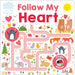 Follow My Heart is a seasonal maze adventure in the Follow Me Maze Books series by Roger Priddy, featuring cute animal characters, Valentine-themed scenes, and finger trails.