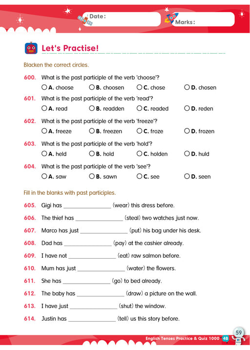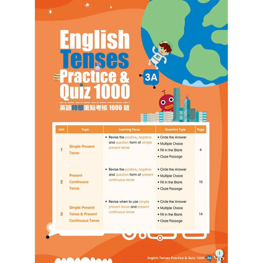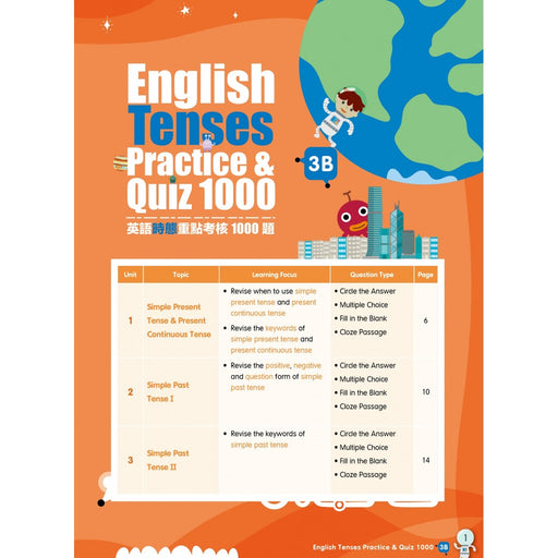 3MS教育出版有限公司In stockEnglish Tenses Practice & Quiz 1000 英語時態重點考核1000題 適用年級:小一至小六 冊次:1A/B-6A/B,共12本 練習數量:每冊14個單元,30個文法測驗 內容特色 全書共有14個單元及30個文法測驗,涵蓋小學...