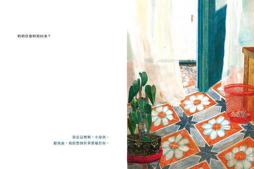 安.艾珀有庫存她從未真正離開 一直就在你的心裡 這是一本描繪想念、追憶與哀悼的繪本 卻滿溢溫暖,輕柔地指引著未來 翻開本書的第一頁,映入眼簾的是寂靜的家中角落。房內鋪著橘紅色地磚,花朵圖案點綴其上,地上擺著一盆生氣盎然的心型葉植物。明亮的陽光透過半開的藍綠色木門傾瀉而下,白色紗簾在微風中輕輕飄...