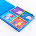Shrink-wrapped box with magnetic fastening and fold-over lid containing 8 mini board books and 6 press-out card characters. Box divided into four rooms for interactive read and play.
