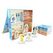 Contains 8 mini board books and 6 press-out card characters. Divided into four rooms for interactive read and play.